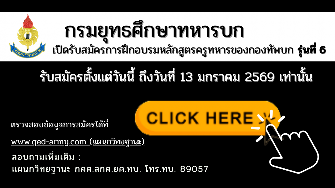 | 31/2567 | ว.วิทยุราชการทหาร ยศ.ทบ. (สกศ.ยศ.ทบ.) ที่ กห 0461.9/346 ลง 19 พ.ย. 67 เรื่อง การรับสมัครการฝึกอบรมหลักสูตรครูทหารของ ทบ. รุ่นที่ 5 ประจำปีงบประมาณ 2568 | |